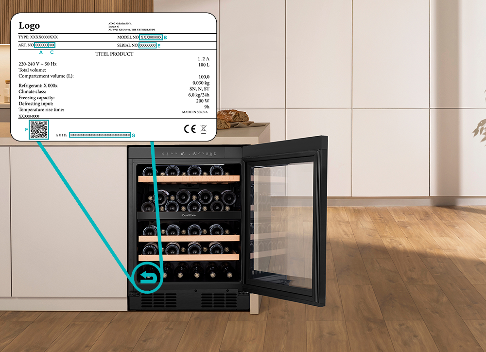 - Onderop het apparaat. Is de plaat bevestigd aan het keukenblad? Dan kun je het artikelnummer niet meer lezen. Raadpleeg in dit geval je factuur of offerte. Daar kun je het artikelnummer vinden.